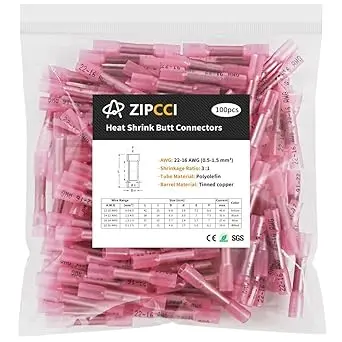 22-16 AWG Heat Shrink Butt Connectors 100pcs